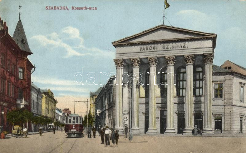 Szabadka Kossuth street, theatre, tram https://www.darabanth.com/hu/14-Nagyaukcio/14.1/Magyar-kepeslapok/Vajdasag~4348/Szabadka-Kossuth-street-theatre-tram~II528746