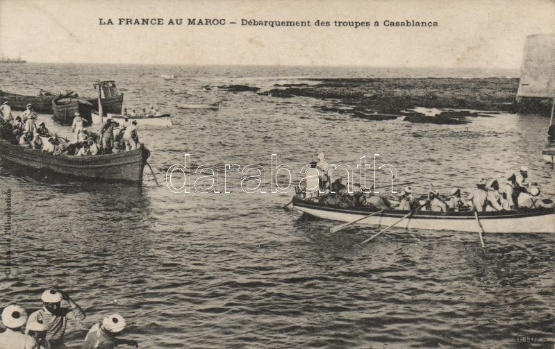 French troops landing at Casablanca https://www.darabanth.com/hu/14-Nagyaukcio/14.1/Motivum-kepeslapok/Hadihajo~4437/French-troops-landing-at-Casablanca~II500442
