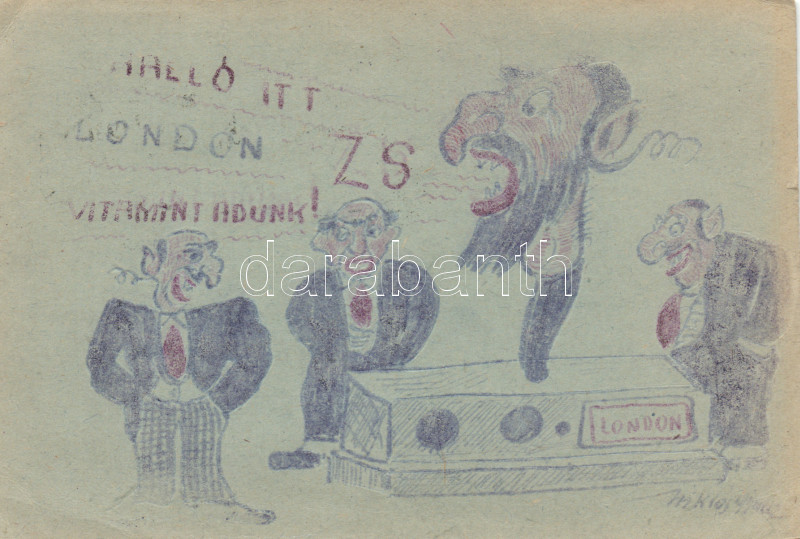 Antisemitic hand-made postcard s: Miklós Gyula, So.Stpl (EK) https://www.darabanth.com/hu/14-Nagyaukcio/14.1/Motivum-kepeslapok/Judaika~4452/Antisemitic-hand-made-postcard-s-Miklos-Gyula-SoStpl-EK~II535641