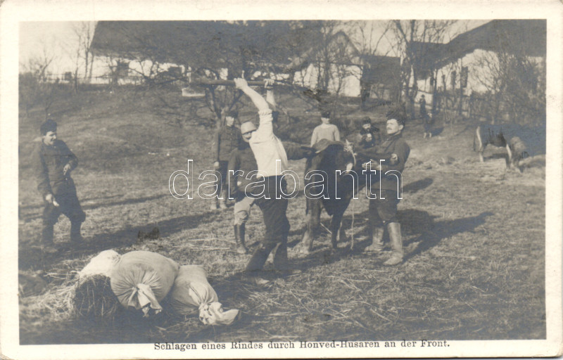 K.u.K. Military, Hungarian Hussars slaughtering a cow https://www.darabanth.com/hu/14-Nagyaukcio/14.1/Motivum-kepeslapok/Katonai~4433/KuK-Military-Hungarian-Hussars-slaughtering-a-cow~II535657