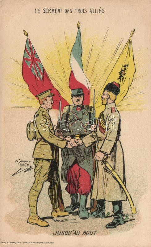 Triple Entente military WWI propaganda, Russia, France, Britain https://www.darabanth.com/hu/14-Nagyaukcio/14.1/Motivum-kepeslapok/Katonai~4433/Triple-Entente-military-WWI-propaganda-Russia-France-Britain~II500574