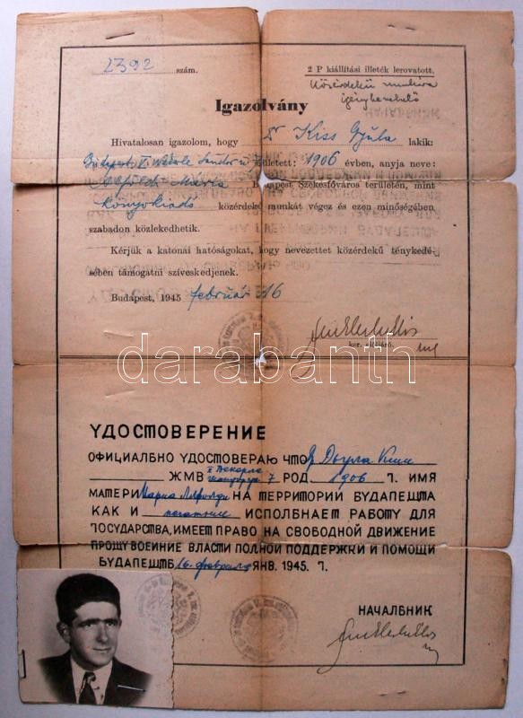 1944 Munkaszolgálatos dokumentumai: Svvájci menlevél, igazolványok, fo... https://www.darabanth.com/hu/14-Nagyaukcio/14.1/Mutargy-papirregiseg/Judaika~4111/1944-Munkaszolgalatos-dokumentumai-Svvajci-menlevel-igazolvanyok-fotok--3Cbr3E1944-Document~II536601