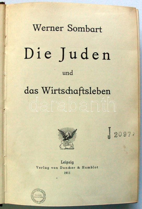 Sombart, Werner: Die Juden und das Wirtschaftsleben. Leipzig, Duncker ... https://www.darabanth.com/hu/14-Nagyaukcio/14.1/Mutargy-papirregiseg/Judaika~4111/Sombart-Werner-Die-Juden-und-das-Wirtschaftsleben-Leipzig-Duncker-Humblot-1911-476p~II542514