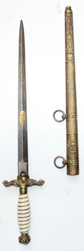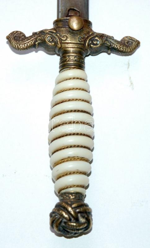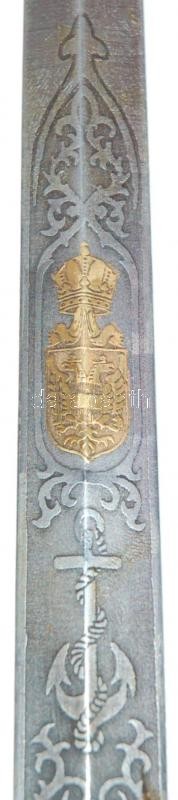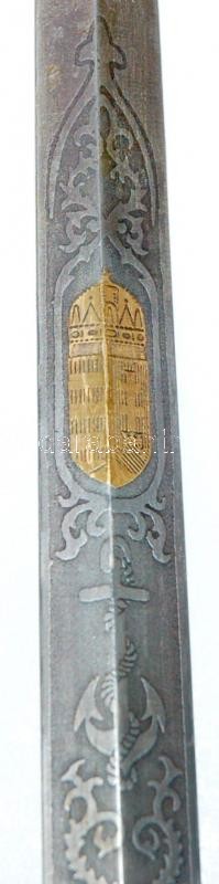 cca 1910 Osztrák-Magyar Folyamőr tiszti tőr maratott pengével, rajta aranyozott magyar és osztrák címerrel / Austrian-Hungarian Riverain Corps dagger 42 cm