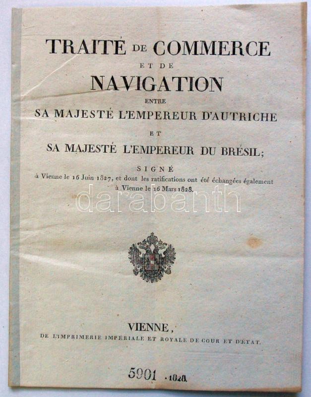 1827 Naval and commercial treaty made between France and Austria. Text with announcing ex offo letter of the Governing Council, with signatures. 20 + 2 p.