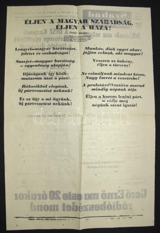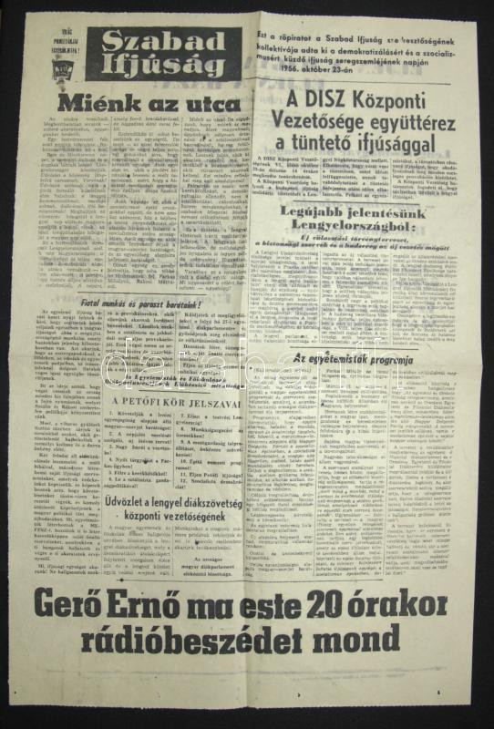 1956 Szabad Ifjúság október 23.-án kiadott röplapja. Hibátlan állapotban. / Flyer issued at the outbreak of the Hungarian revolution in 1956. Flawless condition. 30x50 cm