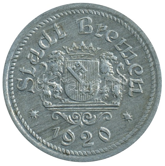 Leírás: Német Birodalom - Weimari Köztársaság / Bréma 1920. 50pf "Not-Geld / Stadt Bremen" szükségpénz (23mm/3.71g) T:2- R! /