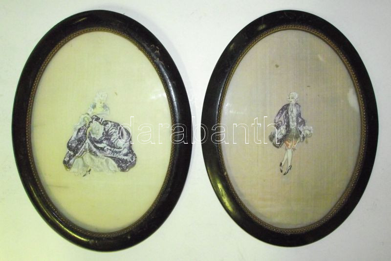 Leírás: cca 1900 2 db festett selyemkép ovális keretben 20x26 cm