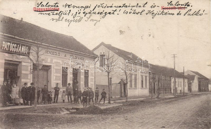 Leírás: Nagyszalonta Kossuth street with the shop of János Patócs and Restaurant Zöldfa