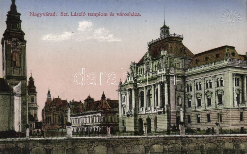 Nagyvárad St László church and town hall https://www.darabanth.com/hu/140-Gyorsarveres/140.0/Kepeslapok/Erdely~20006/Nagyvarad-St-Laszlo-church-and-town-hall~II411756