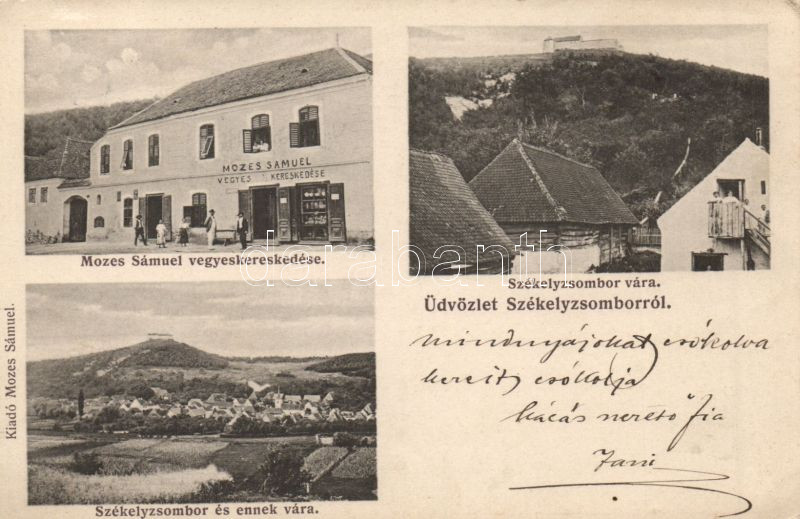 Székelyzsombor with the shop of Sámuel Mózes https://www.darabanth.com/hu/140-Gyorsarveres/140.0/Kepeslapok/Erdely~20006/Szekelyzsombor-with-the-shop-of-Samuel-Mozes~II411611