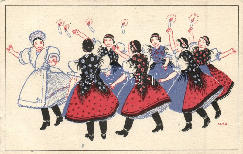 Hungarian folklore, bridal dance Galgahévíz So.Stpl https://www.darabanth.com/hu/140-Gyorsarveres/140.0/Kepeslapok/Folklor~40067/Hungarian-folklore-bridal-dance-Galgaheviz-SoStpl~II413169