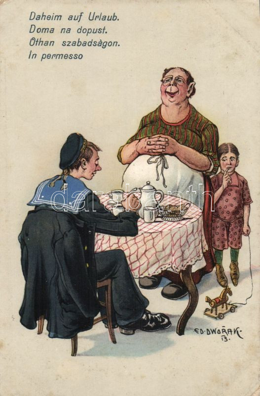 K.u.K. marine humour - days off litho s: Dworak https://www.darabanth.com/hu/140-Gyorsarveres/140.0/Kepeslapok/Hadihajo~40070/KuK-marine-humour--days-off-litho-s-Dworak~II411387