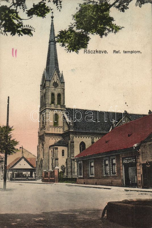 Ráckeve Református templom a Ráckevei Áruházzal https://www.darabanth.com/hu/140-Gyorsarveres/140.0/Kepeslapok/Magyarorszag~20005/Rackeve-Reformatus-templom-a-Rackevei-Aruhazzal~II410290
