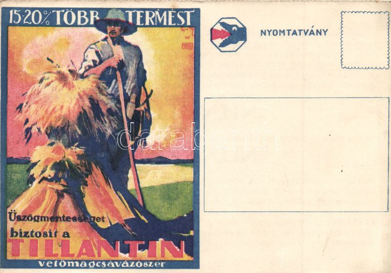 Tillantin vetőmagcsávázószer, agricultural advertisement, folding card https://www.darabanth.com/hu/140-Gyorsarveres/140.0/Kepeslapok/Reklam~40085/Tillantin-vetomagcsavazoszer-agricultural-advertisement-folding-card~II411411