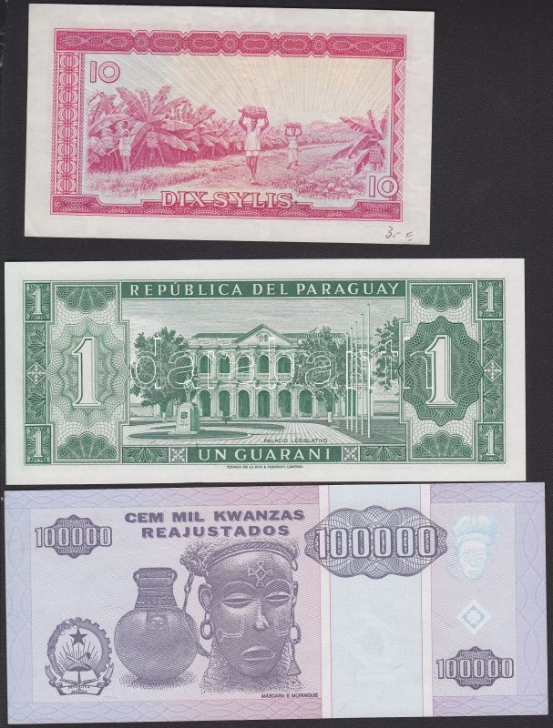 Angola 1995.5.1. 100.000K T:I + Guinea 1980. 10S T:I + Paraguay 1952. ... https://www.darabanth.com/hu/140-Gyorsarveres/140.0/Numizmatika/Kulfoldi-bankjegyek~10012/Angola-199551-100000K-TI-plus-Guinea-1980-10S-TI-plus-Paraguay-1952-1G-TI~II411462