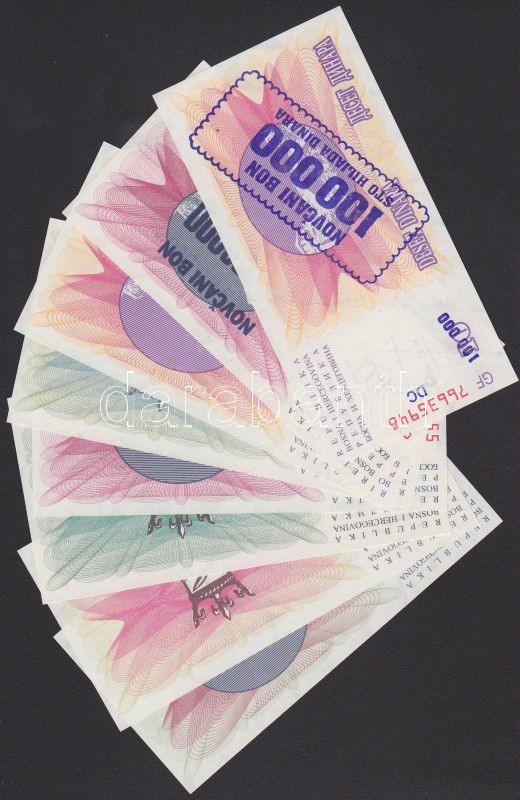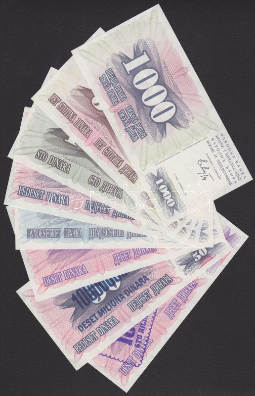 Leírás: Bosznia-Hercegovina 1992. 10D, 25D, 50D, 100D, 500D, 1000D + 1993. 100.000D + 10.000.000D "novcsani bon" T:I