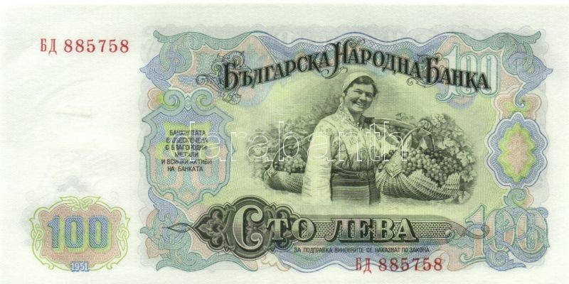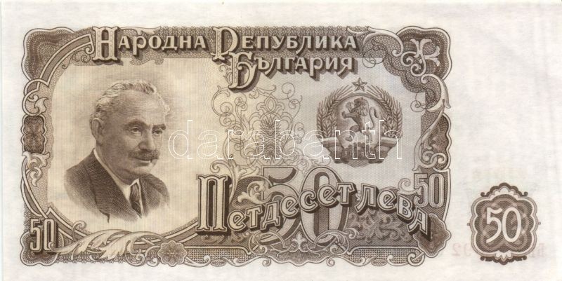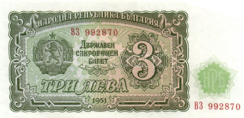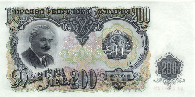 Bulgária 1951. 3L (2x), 5L, 10L (2x), 25L, 50L, 100L, 200L T:I https://www.darabanth.com/hu/140-Gyorsarveres/140.0/Numizmatika/Kulfoldi-bankjegyek~10012/Bulgaria-1951-3L-2x-5L-10L-2x-25L-50L-100L-200L-TI~II410529