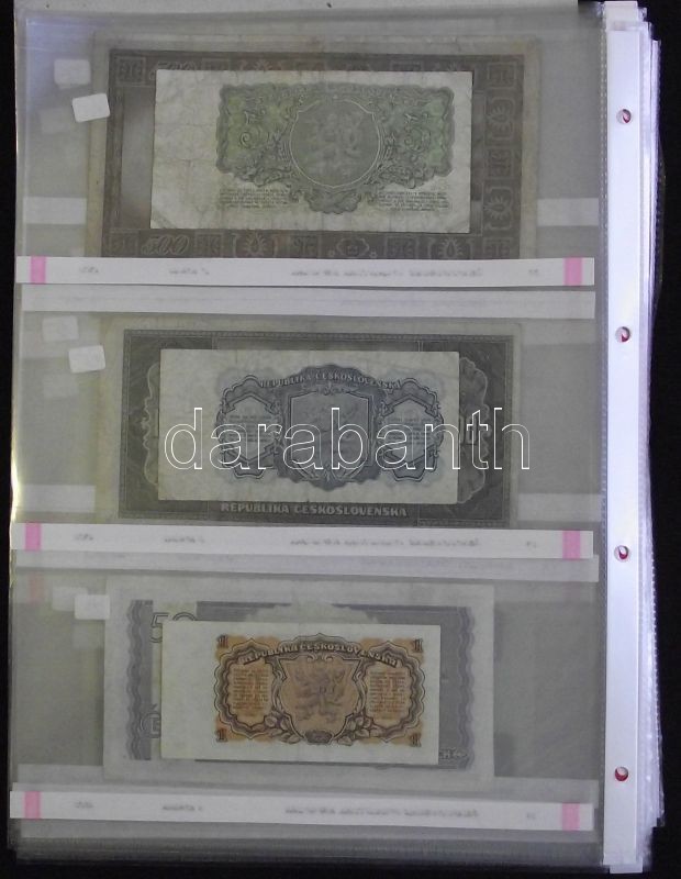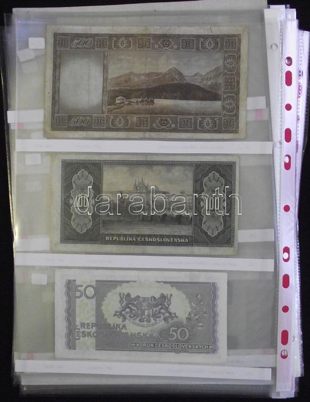 Leírás: Csehszlovákia 1919-1970. 26db klf bankjegy közte 1926. 20K "SPECIMEN" perforációval, támpéldánnyal! T:vegyes