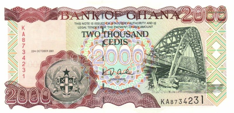 Ghana 2001.22.10. 1000C + 2000C T:I https://www.darabanth.com/hu/140-Gyorsarveres/140.0/Numizmatika/Kulfoldi-bankjegyek~10012/Ghana-20012210-1000C-plus-2000C-TI~II410516