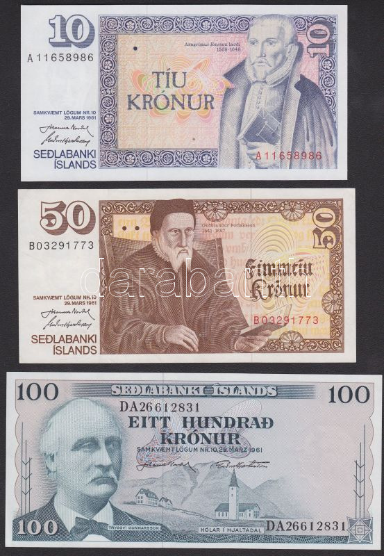 Leírás: Izland 1961. 100K + 1961.(1981) 10K + 50K T:I