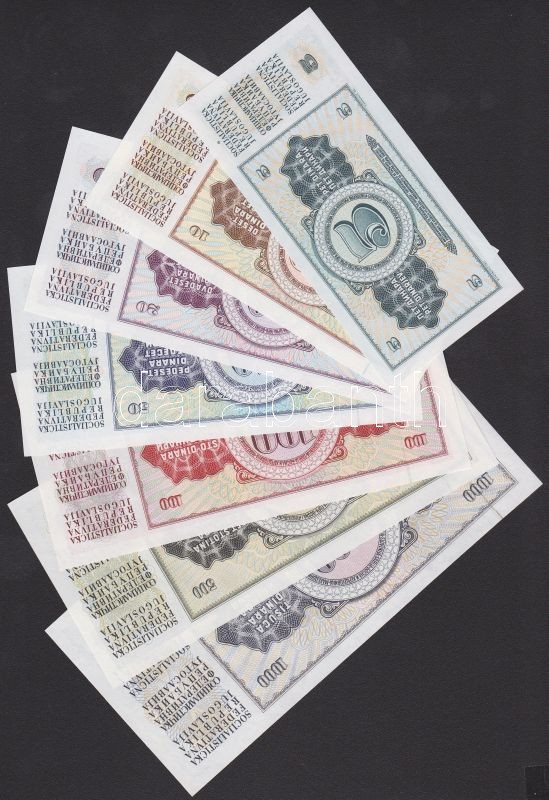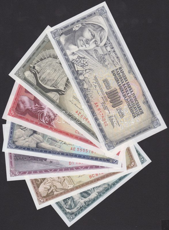 Leírás: Jugoszlávia 1968.5.1. 5D + 1978. 20D + 50D + 1000D + 1981. 10D + 100D + 500D T:I
