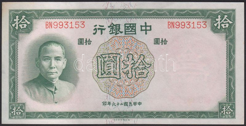 Kínai Köztársaság 1937. 10Y T:I https://www.darabanth.com/hu/140-Gyorsarveres/140.0/Numizmatika/Kulfoldi-bankjegyek~10012/Kinai-Koztarsasag-1937-10Y-TI~II413259