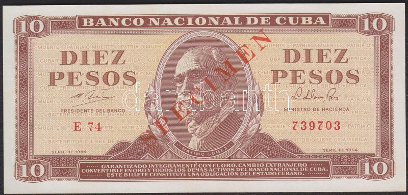 Kuba 1964. 10P "SPECIMEN" felülbélyegzéssel T:I https://www.darabanth.com/hu/140-Gyorsarveres/140.0/Numizmatika/Kulfoldi-bankjegyek~10012/Kuba-1964-10P-SPECIMEN-felulbelyegzessel-TI~II413480