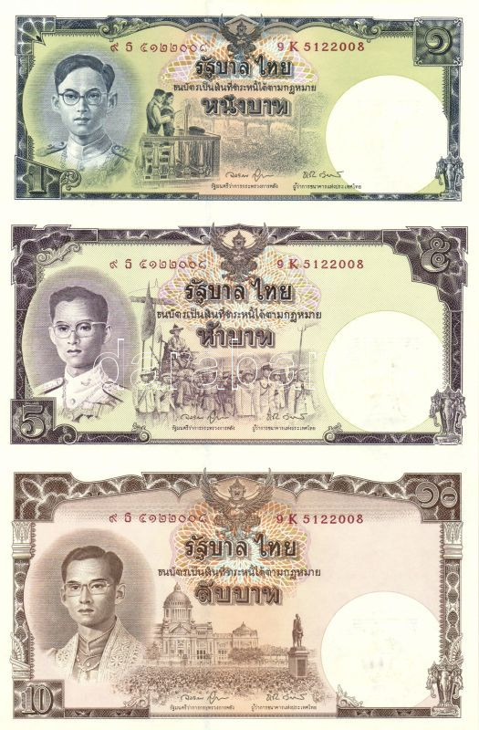 Thaiföld 1963. 1B + 5B + 10B hármas ívben! T:I https://www.darabanth.com/hu/140-Gyorsarveres/140.0/Numizmatika/Kulfoldi-bankjegyek~10012/Thaifold-1963-1B-plus-5B-plus-10B-harmas-ivben-TI~II411897