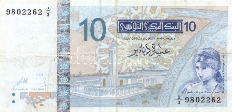 Tunézia 1973. 1/2D T:I + 2005. 10D T:III https://www.darabanth.com/hu/140-Gyorsarveres/140.0/Numizmatika/Kulfoldi-bankjegyek~10012/Tunezia-1973-12D-TI-plus-2005-10D-TIII~II411108
