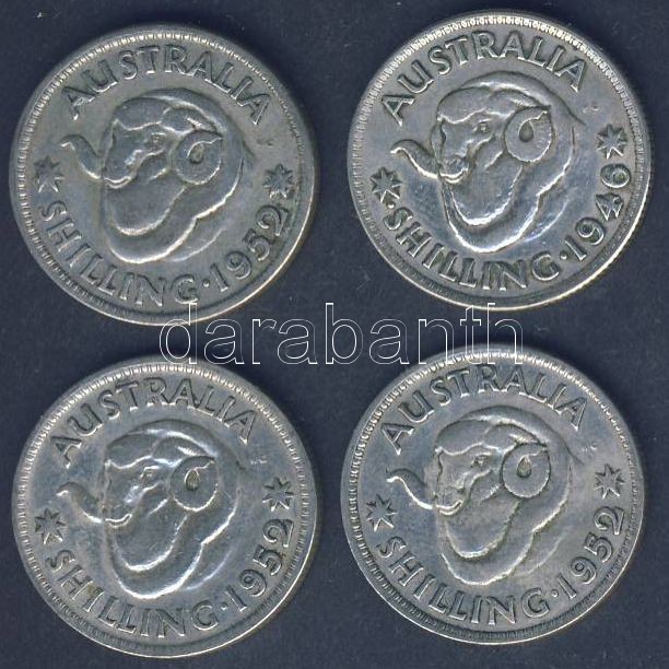 Ausztrália 1946-1952. 1Sh (4x) T:3 https://www.darabanth.com/hu/140-Gyorsarveres/140.0/Numizmatika/Kulfoldi-fem-es-ezustpenzek~10013/Ausztralia-1946-1952-1Sh-4x-T3~II413963
