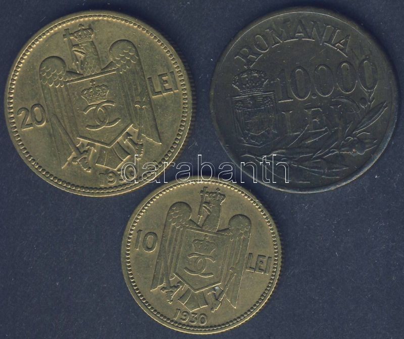 Románia 1930-1947. 10L, 20L, 10.000L T:3 https://www.darabanth.com/hu/140-Gyorsarveres/140.0/Numizmatika/Kulfoldi-fem-es-ezustpenzek~10013/Romania-1930-1947-10L-20L-10000L-T3~II412740