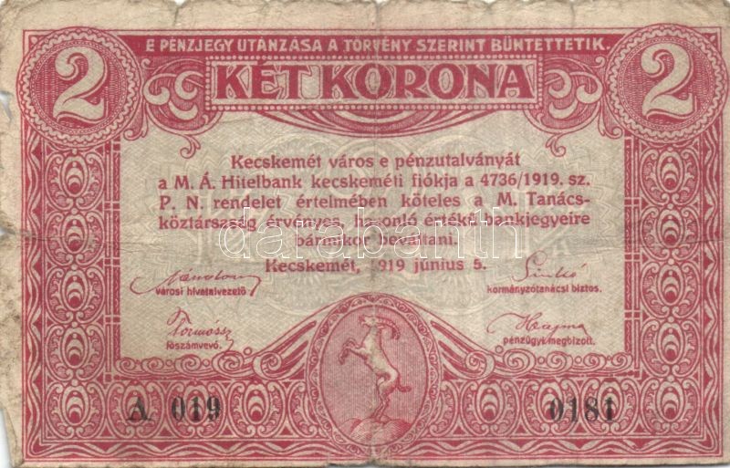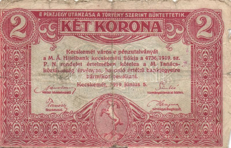 Kecskemét 1919. 2K T:III- https://www.darabanth.com/hu/140-Gyorsarveres/140.0/Numizmatika/Magyar-es-kulfoldi-papir-es-fem-szuksegpenzek-penzhelyettesitok-~10007/Kecskemet-1919-2K-TIII-~II401889