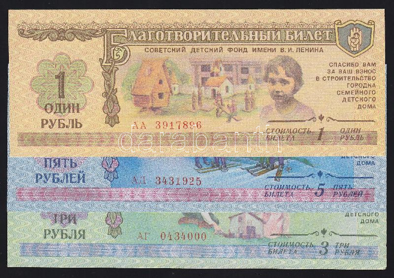 Leírás: Szovjetunió 1988. 1R, 3R, 5R "Lenin Gyermekvárosi Alap" kuponjai T:I
