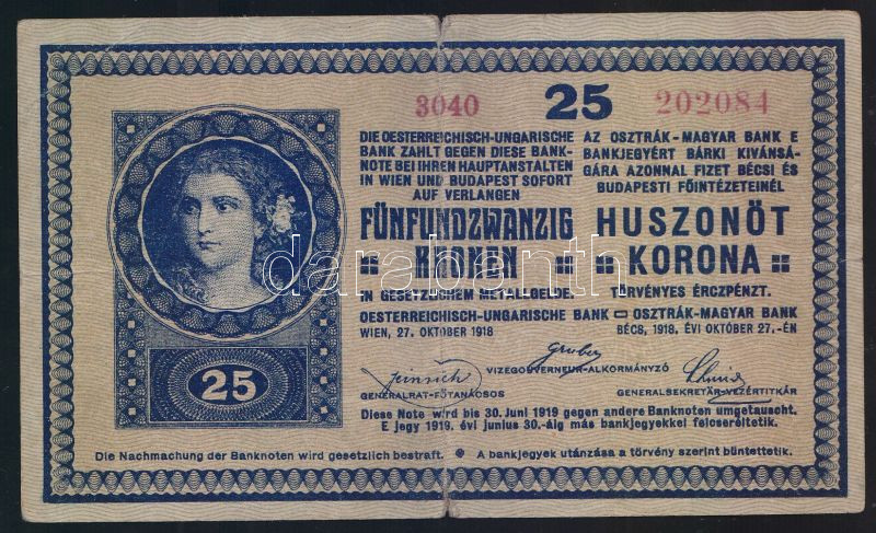 1918. 25K hullámos hátlap, 3000 feletti sorozat "III. Hadtest Szervező... https://www.darabanth.com/hu/140-Gyorsarveres/140.0/Numizmatika/Magyar-es-magyar-vonatkozasu-bankjegyek~10008/1918-25K-hullamos-hatlap-3000-feletti-sorozat-III-Hadtest-Szervezo-Csoportja-belyegzessel-~II411940