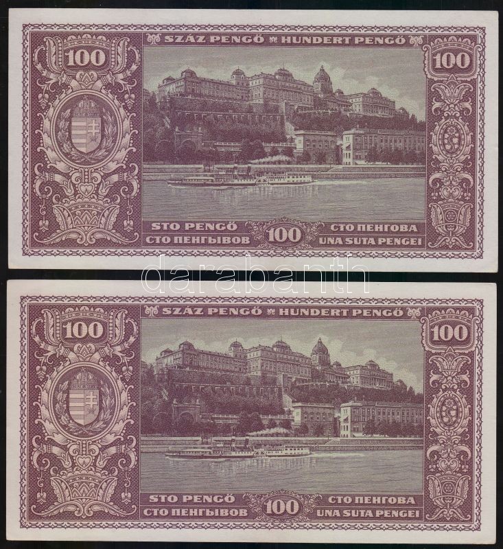 Leírás: 1945. 100P (2x) egymásutáni sorszámmal! T:I-