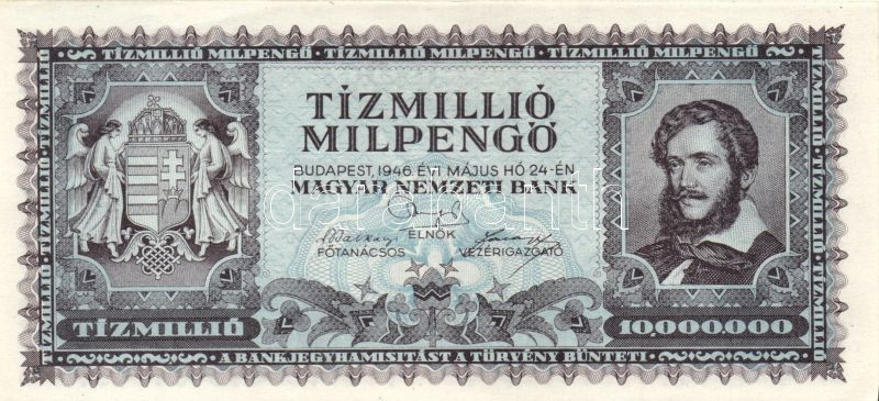 1946. 10.000.000MP (2x) T:I- https://www.darabanth.com/hu/140-Gyorsarveres/140.0/Numizmatika/Magyar-es-magyar-vonatkozasu-bankjegyek~10008/1946-10000000MP-2x-TI-~II408931