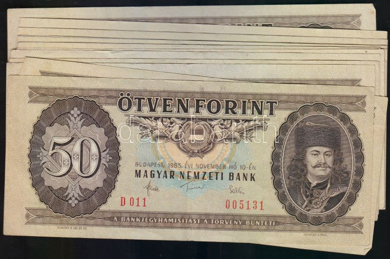 1983. 50Ft (15x) T:II,III https://www.darabanth.com/hu/140-Gyorsarveres/140.0/Numizmatika/Magyar-es-magyar-vonatkozasu-bankjegyek~10008/1983-50Ft-15x-TII-III~II384303