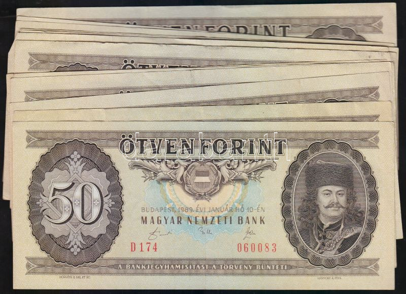 1989. 50Ft (15x) T:II,III https://www.darabanth.com/hu/140-Gyorsarveres/140.0/Numizmatika/Magyar-es-magyar-vonatkozasu-bankjegyek~10008/1989-50Ft-15x-TII-III~II384395