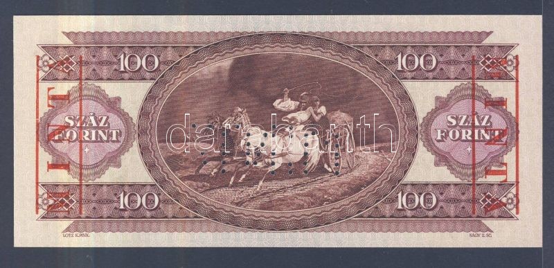 Leírás: 1992. 100Ft "MINTA" perforációval és felülnyomással "B 000" sorozatszámmal T:I