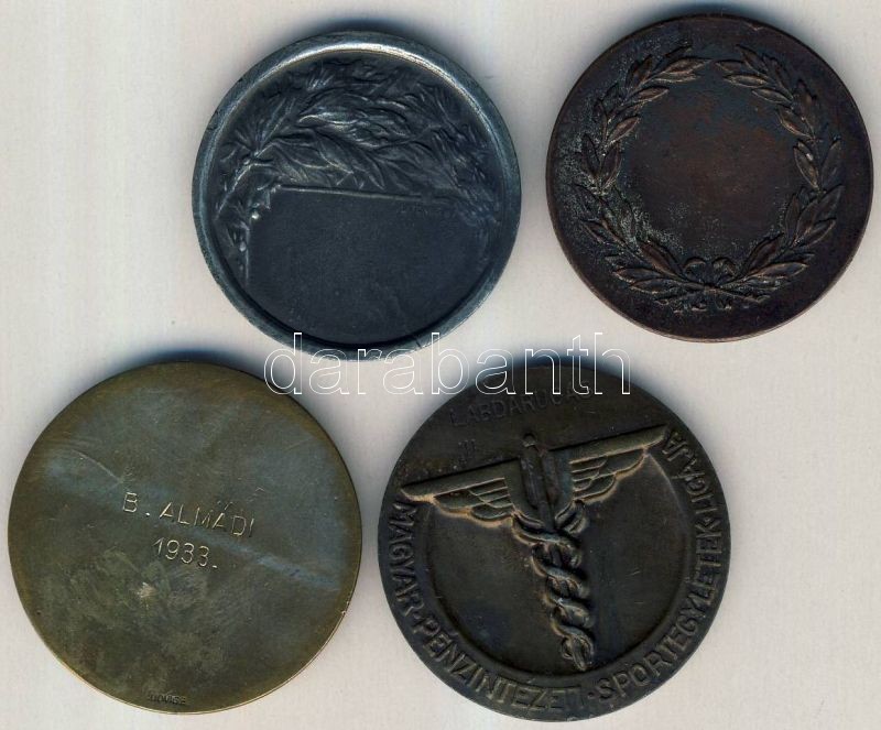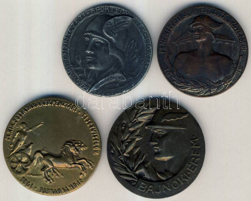 1912-1933. 4db klf bankos sportérem T:2,2- https://www.darabanth.com/hu/140-Gyorsarveres/140.0/Numizmatika/Magyar-nemesfem-es-fem-emlekveretek-plakettek-kituntetesek~10010/1912-1933-4db-klf-bankos-sporterem-T2-2-~II410831