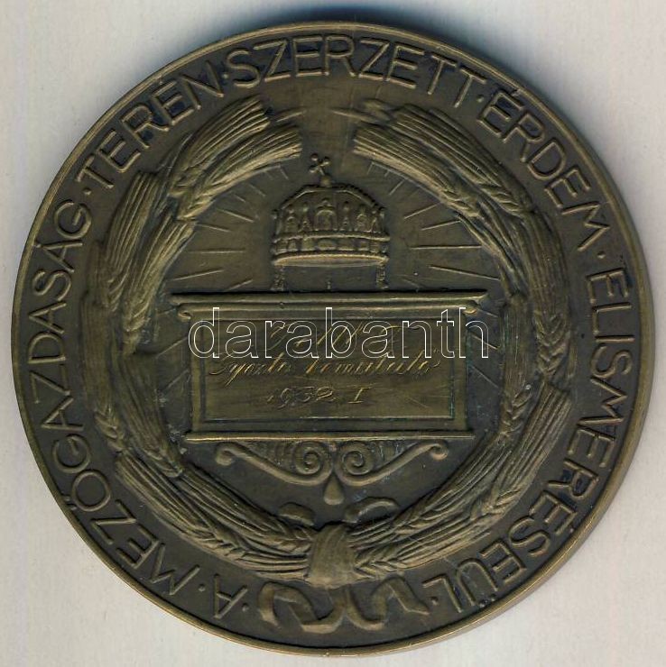 Leírás: 1932. Berán Lajos: Földművelésügyi Br díjérem T:2+