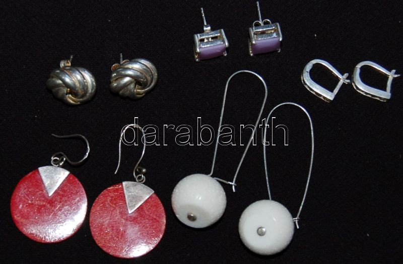 Leírás: 5 pár fülbevaló, közte ezüst (Ag), briós és korall br. 41,35 gr
