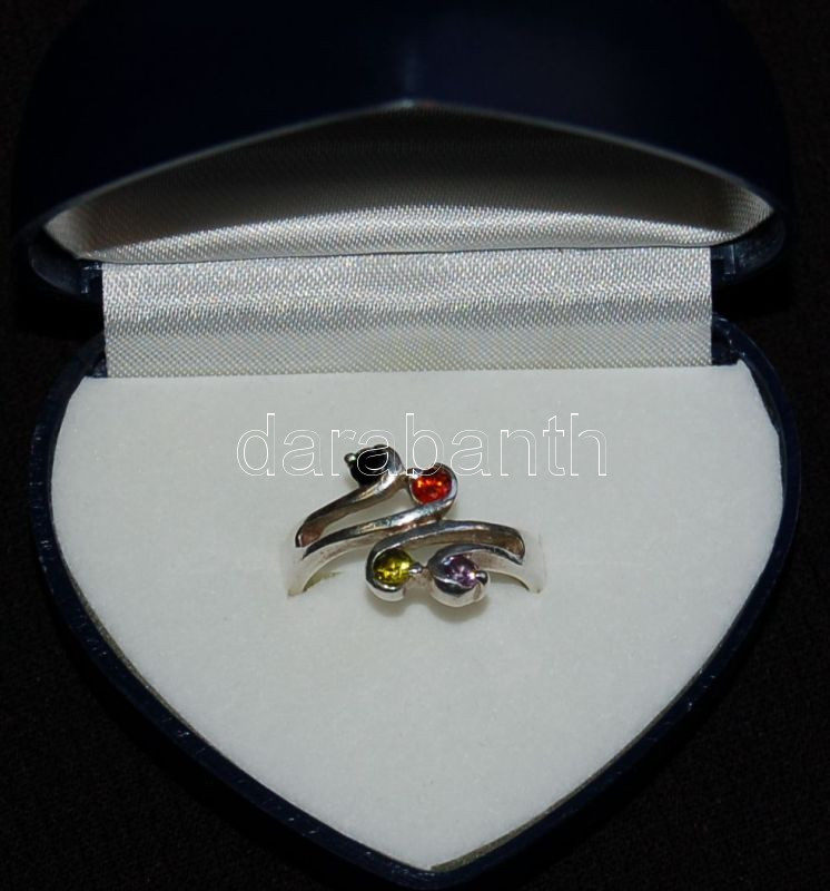 Leírás: Női ezüst (Ag) gyűrű 4 db szintetikus drágakővel díszítve 3,76 gr díszdobozban