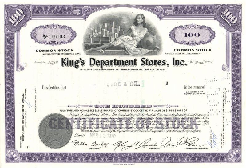 USA / Brockton, Massachusetts 1970. Kings Department Stores Inc. diszk... https://www.darabanth.com/hu/140-Gyorsarveres/140.0/Numizmatika/Reszvenyek-Ertekpapirok-Sorsjegyek~10006/USA-Brockton-Massachusetts-1970-Kings-Department-Stores-Inc-diszkont-aruhazlanc-reszvenye-~II399309