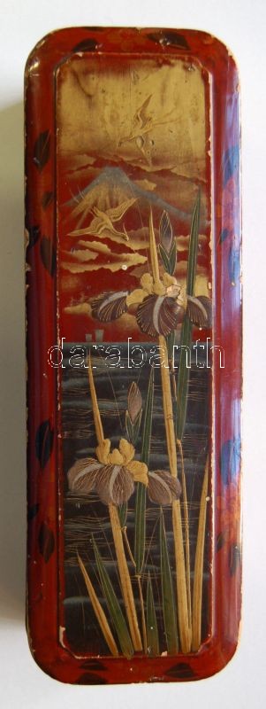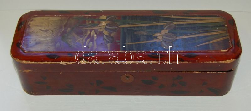 Leírás: Szecessziós festett zárható fa ládika kulcs nélkül, kopottan / Art nouevau hand painted wooden box (weary) 34x12 cm