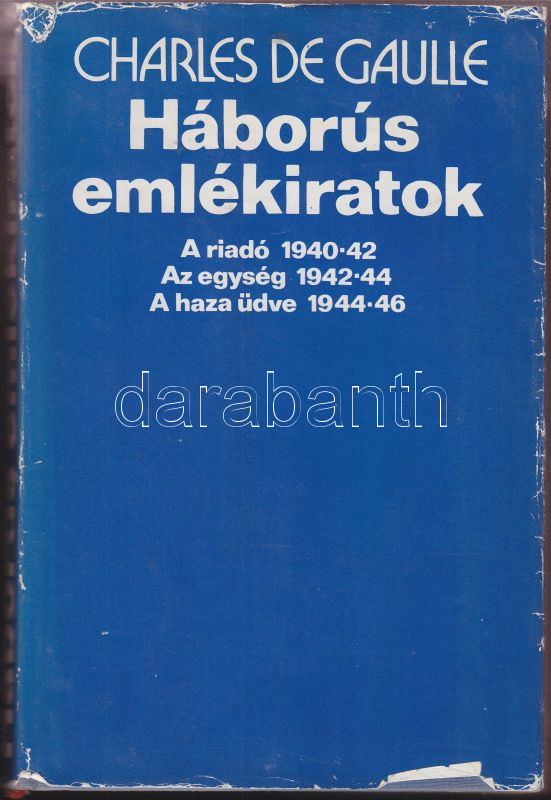 1973 Charles de Gaulle: Háborús emlékiratok (1940-1946) Gondolta Kiadó... https://www.darabanth.com/hu/141-Gyorsarveres/141.0/Festmeny-mutargy-papirregiseg-egyeb/Militaria~20015/1973-Charles-de-Gaulle-Haborus-emlekiratok-1940-1946-Gondolta-Kiado-Bp-kiadoi-kemenykot~II407301