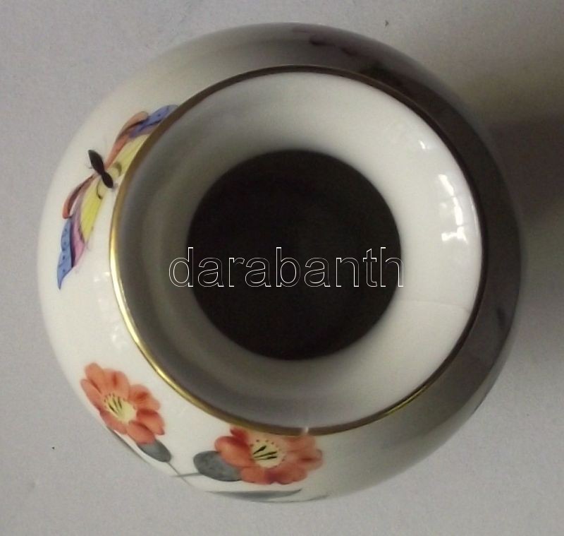 Leírás: Kézzel festett Herendi porcelán váza virágokkal és pillangókkal díszítve (apró törés) / Herendi handpainted chinaware vase (small damage) 14 cm