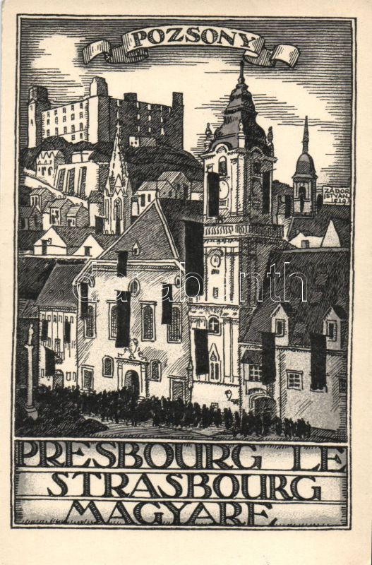 Pozsony, the Hungarian Strasbourg irredenta propaganda s: Zádor István... https://www.darabanth.com/hu/141-Gyorsarveres/141.0/Kepeslapok/Felvidek~141/Pozsony-the-Hungarian-Strasbourg-irredenta-propaganda-s-Zador-Istvan-cut~II419736