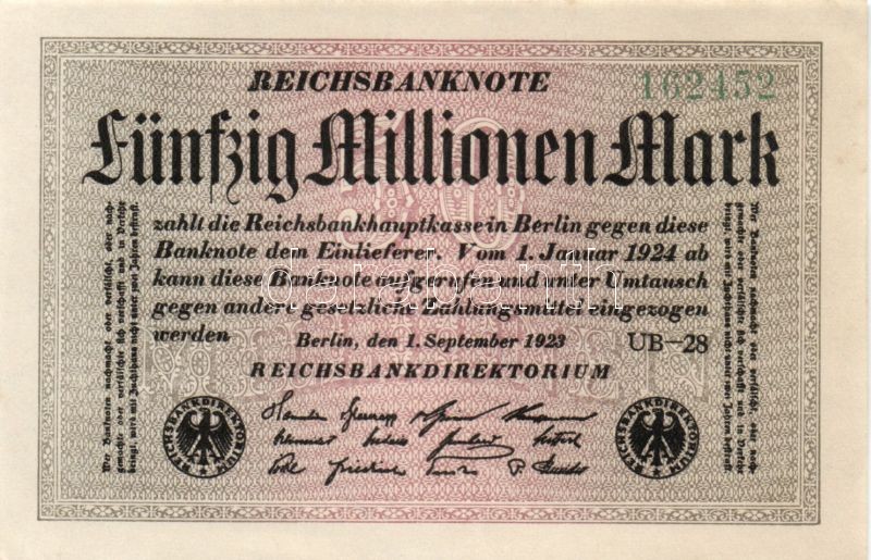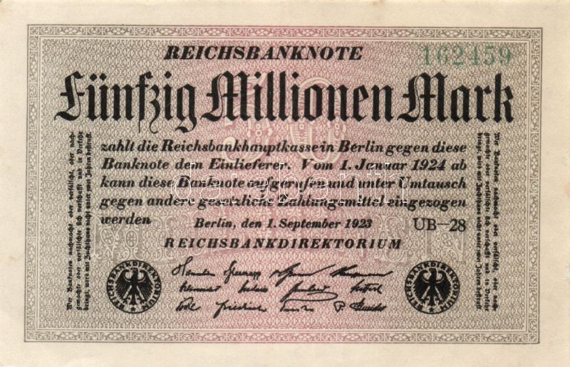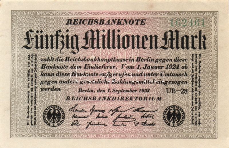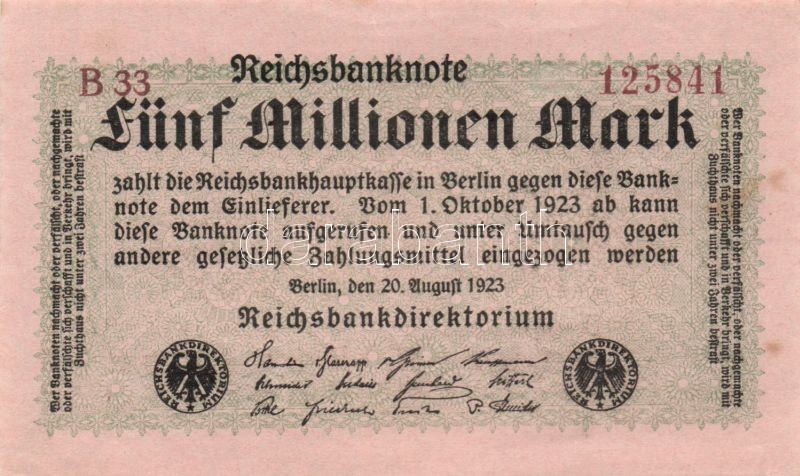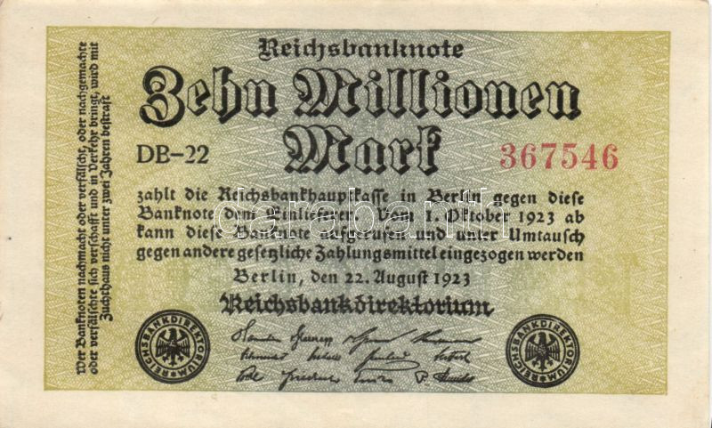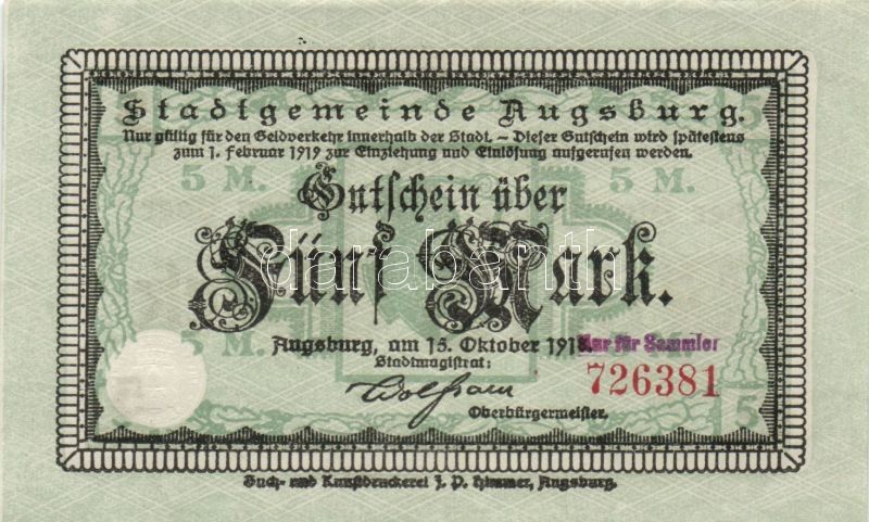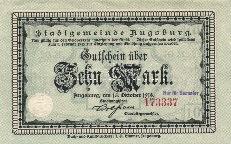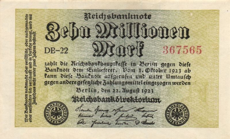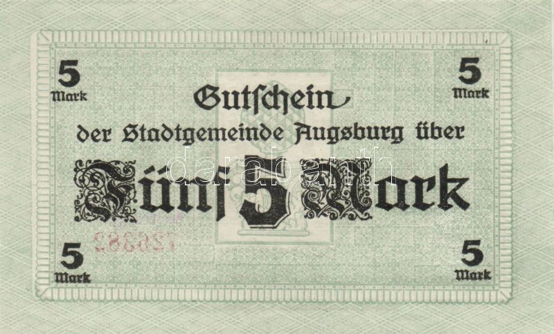 Német Birodalom/Császárság/Augsburg 1918.10.15. 5M, 10M hivatalos érvénytelenítéssel T:I,I- + Német Birodalom / Weimari Köztársaság 1923. 5.000.000M cégnyomat T:I- + 1923. 50.000.000M (3x) fehér papíron, "Gitter mit 8 vízjellel" közeli sorszámokkal T:I,I- + 1923. 10.000.000M (2x) variáns "Hakensterne" vízjellel; közeli sorszámokkal, jobb felső sarokban alapnyomati lemezhibával! T:I-,II+